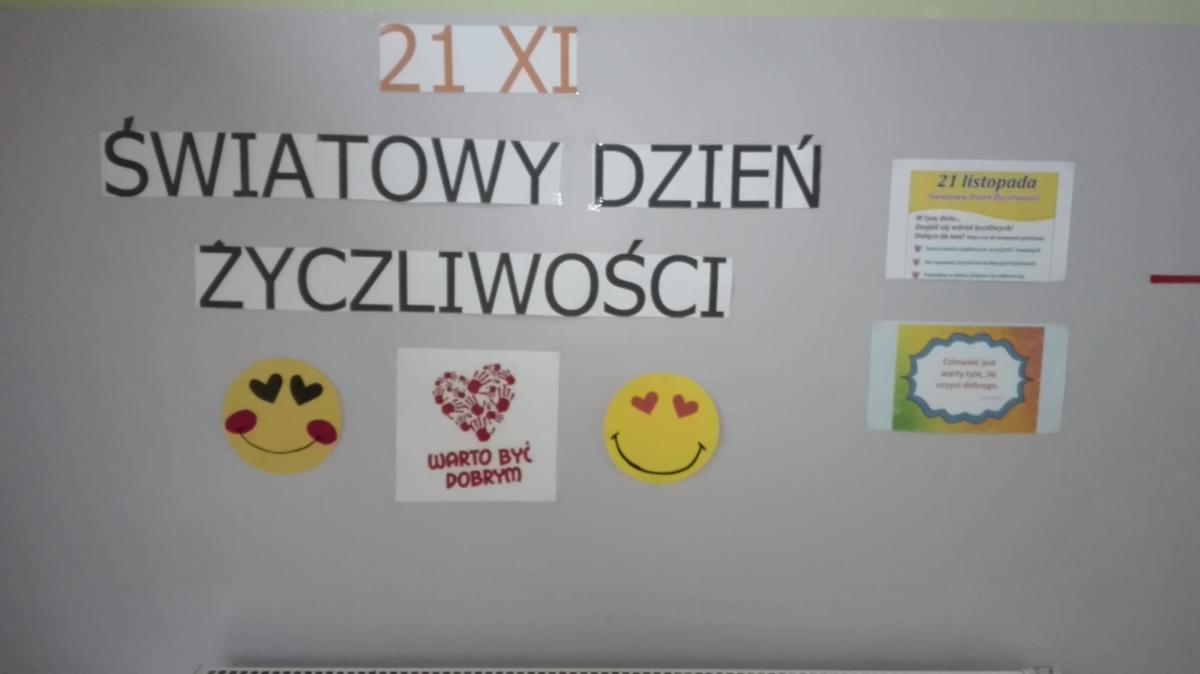 Dnia 21 listopada już po raz kolejny w naszej szkole obchodziliśmy Dzień Życzliwości i Pozdrowień. Idea tego dnia do dziś jest taka sama, czyli bądźmy dla siebie serdeczni i życzliwi, wspólne problemy rozwiązujmy w sposób bezkonfliktowy.