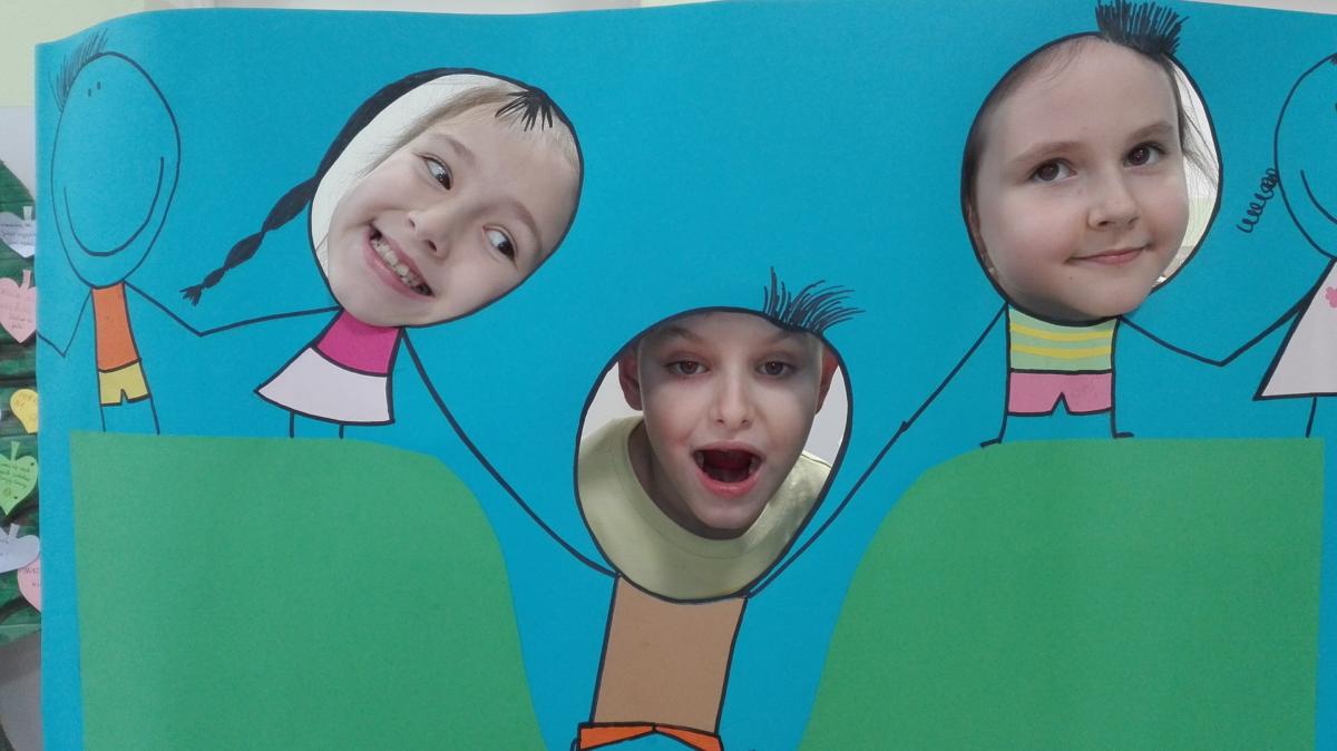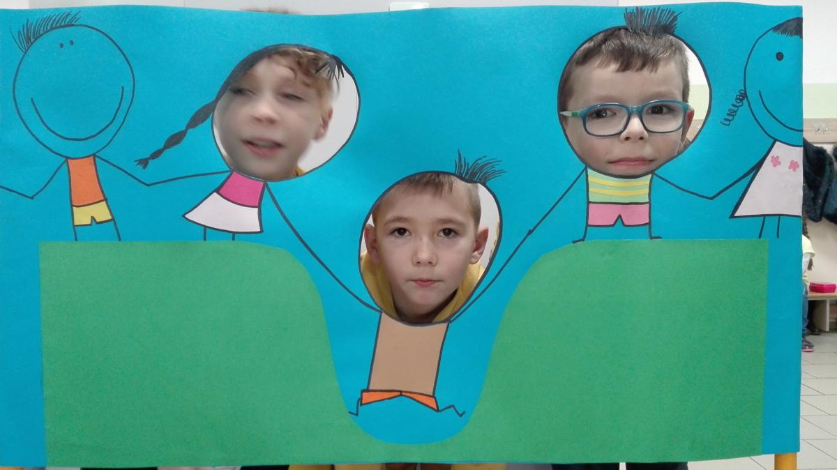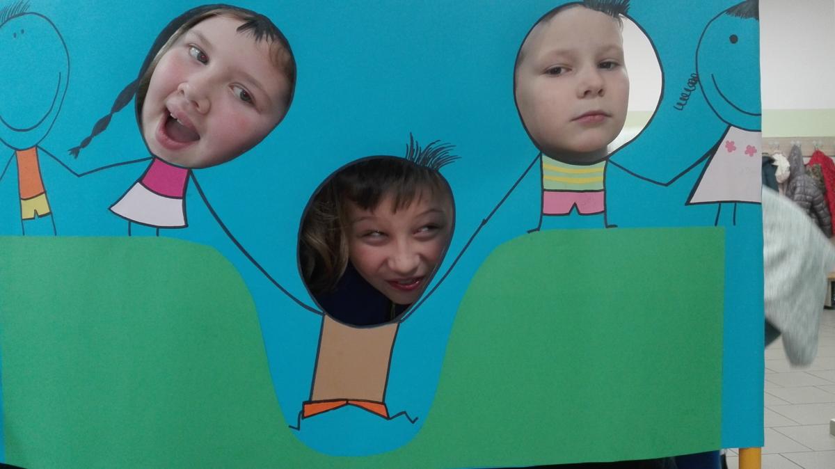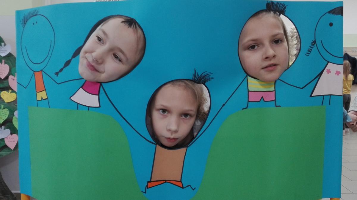 wesołego zdjęcia na stanowisku, gdzie trzeba było włożyć głowę w wycięty otwór z osobami, które nam kiedyś pomogły.