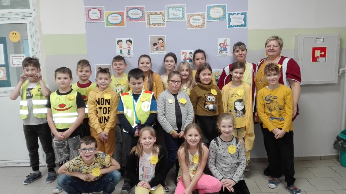 międzyklasowy konkurs na najliczniej ubraną na żółto klasę w szkole. Aż trzy klasy były przebrane w 100% i otrzymały na pamiątkę piłki minki.