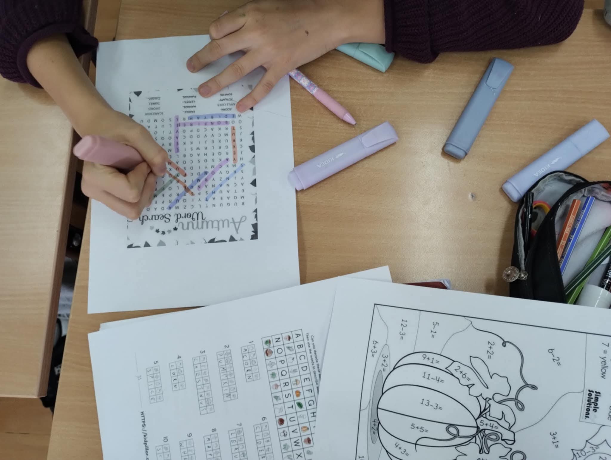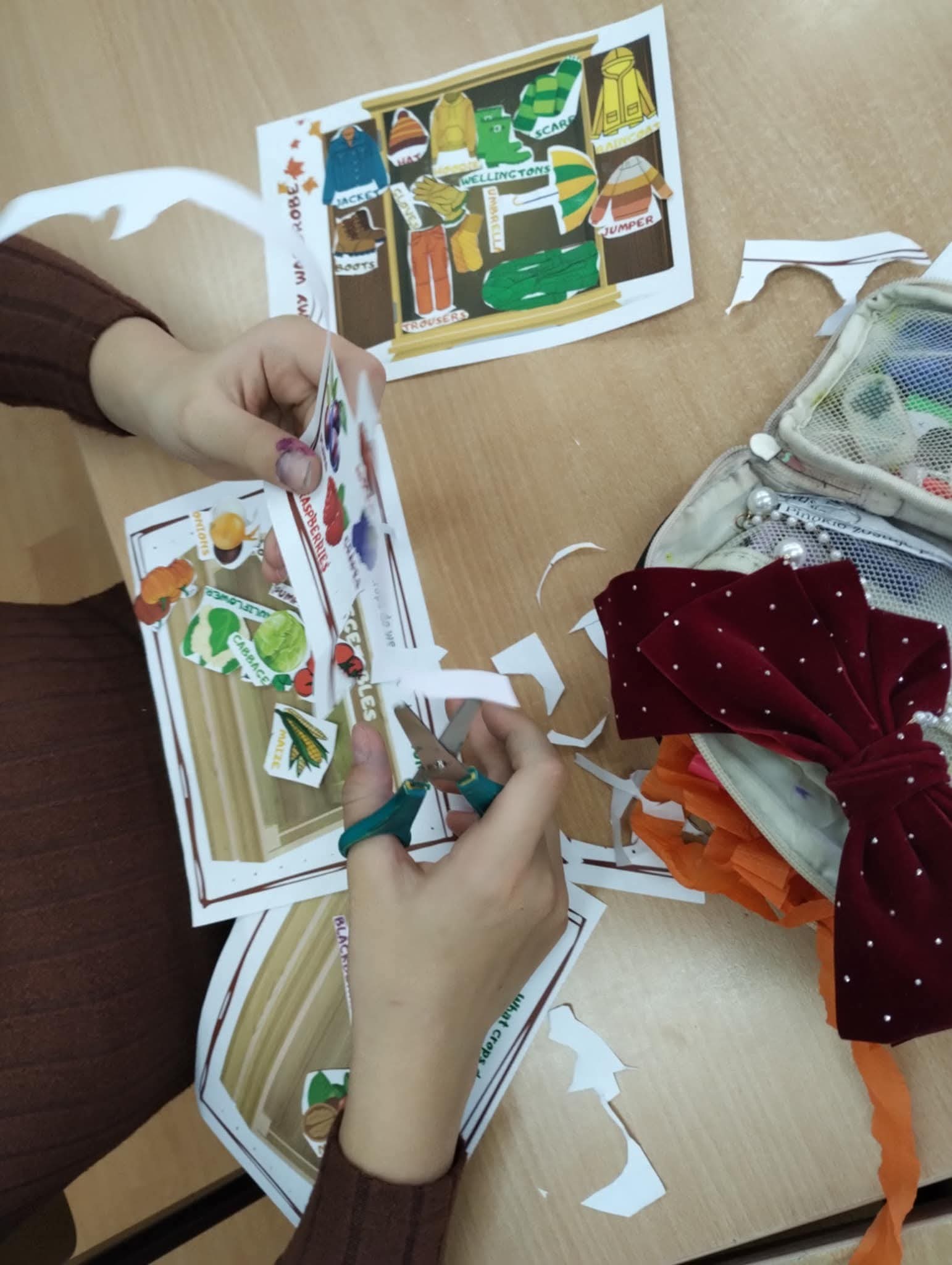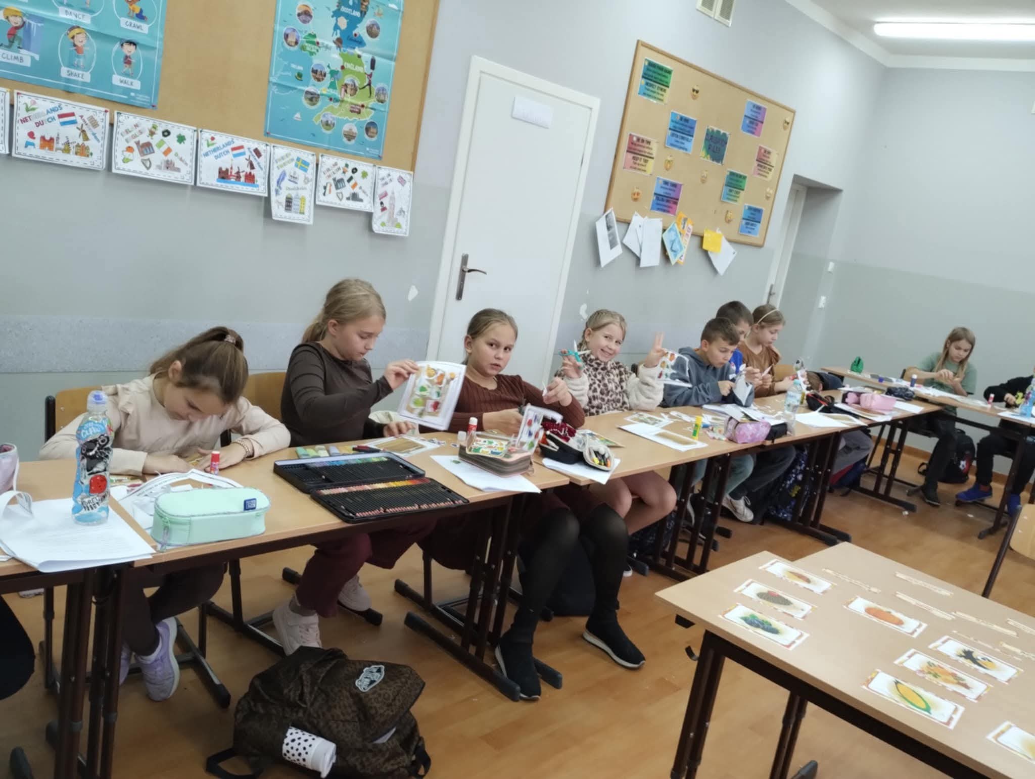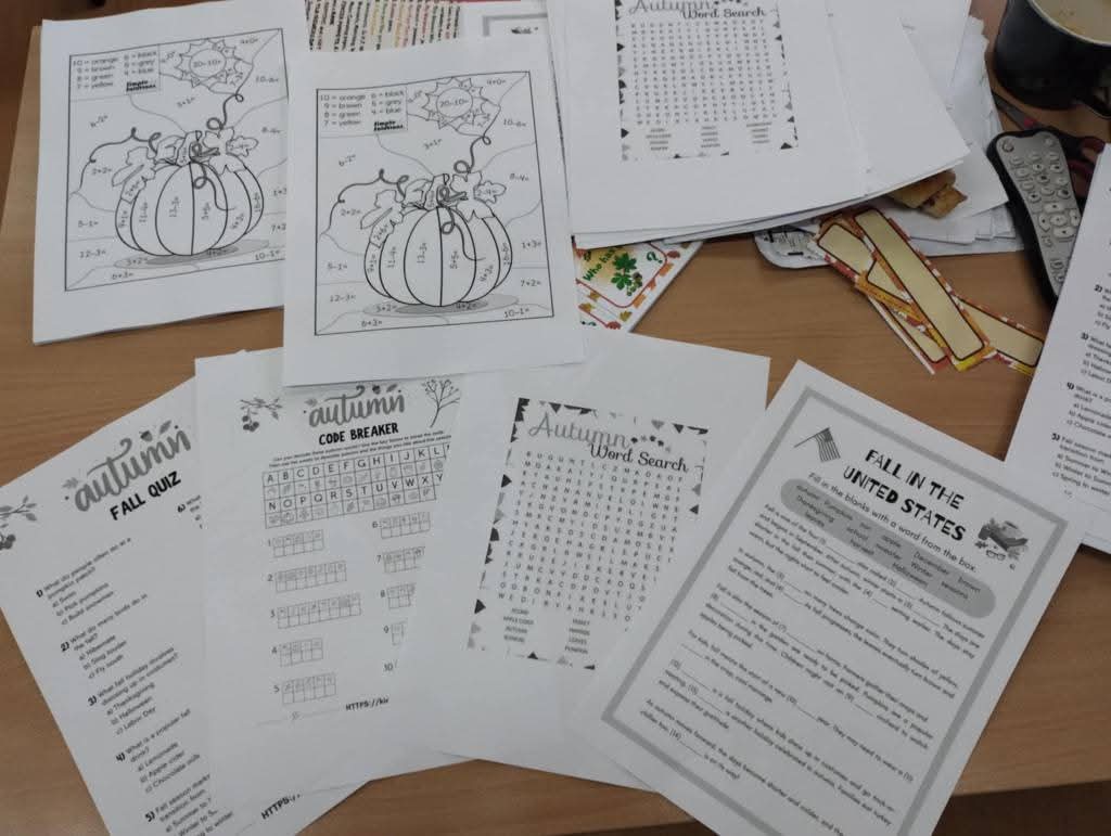 W tym tygodniu klasy 6b i 4b w lekcjach projektowych pogłębiały swoją wiedzę na temat jesieni. Na lekcji poznawaliśmy słownictwo w ciekawych ćwiczeniach, uzupełnialiśmy skrzyneczki z owocami i warzywami jesiennymi oraz porządkowaliśmy jesienną garderobę. Uczniom najbardziej podobały się matematyczno językowe kolorowanki.