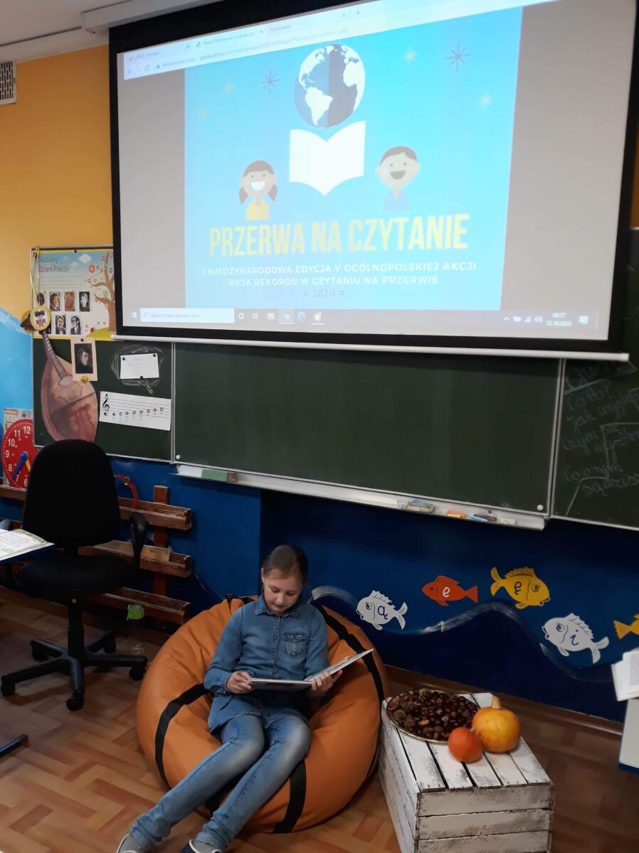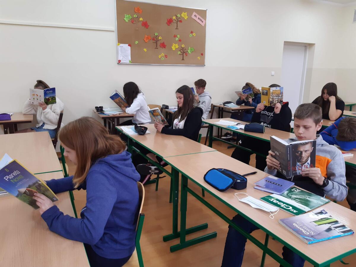 Dnia 12 października 2020 r.  odbyła się w naszej szkole akcja bicia rekordu w czytaniu na przerwie pt. „Przerwa na czytanie”. Wydarzenie odbyło się w ramach Międzynarodowego Miesiąca Bibliotek Szkolnych oraz kampanii społecznej „Cała Polska czyta dzieciom”. W akcji wzięło udział 342 osoby.