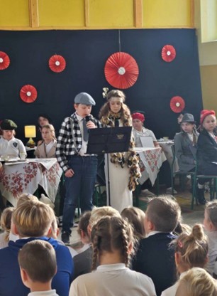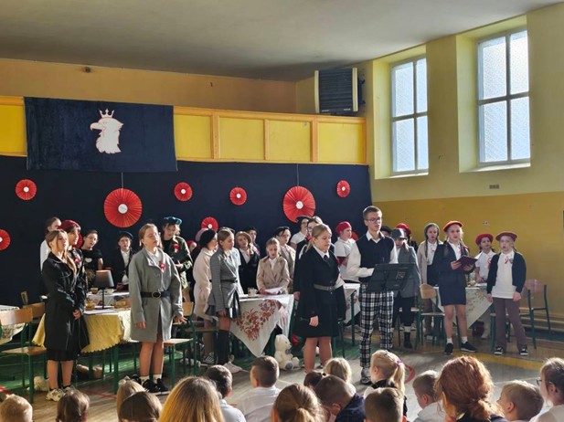 Klasy 6a, 6b i 5a wraz ze szkolnym chórem „Gama” przygotowały piękny, wzruszający apel pełen patriotycznych piosenek i poezji, które przypomniały nam, jak ważna jest wolność i miłość do Ojczyzny.